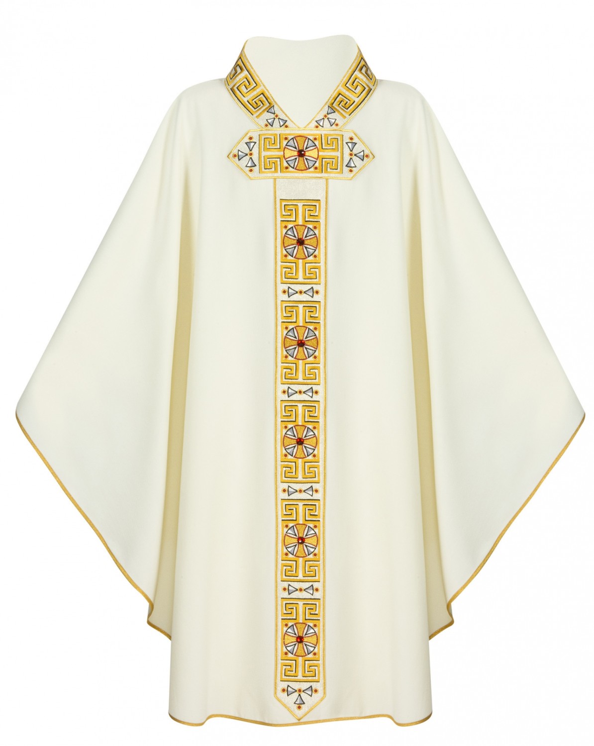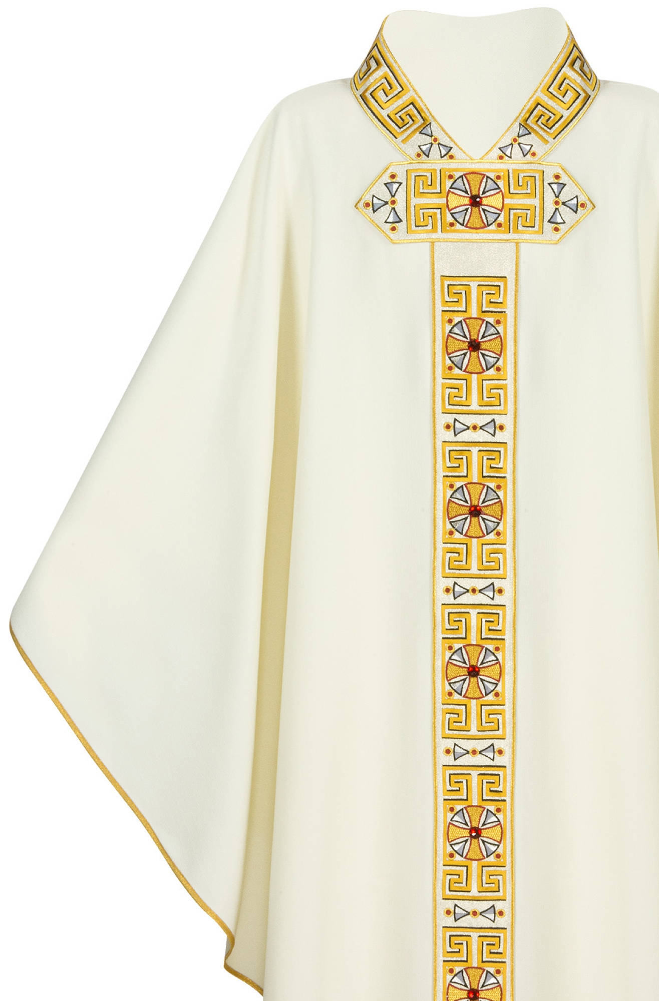Chasuble made of a soft, light fabric blend of natural fibres and polyester.