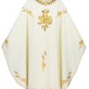 The front part features a formal embroidered JHS symbol, with a cross at the back, and the framework is completed with embroidered ears of wheat and vine leaves on both sides and along the entire hem.