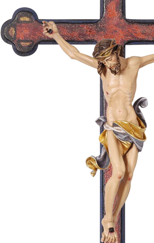 The body of Jesus Crucified is sculpted of painted wood with some gilded elements.