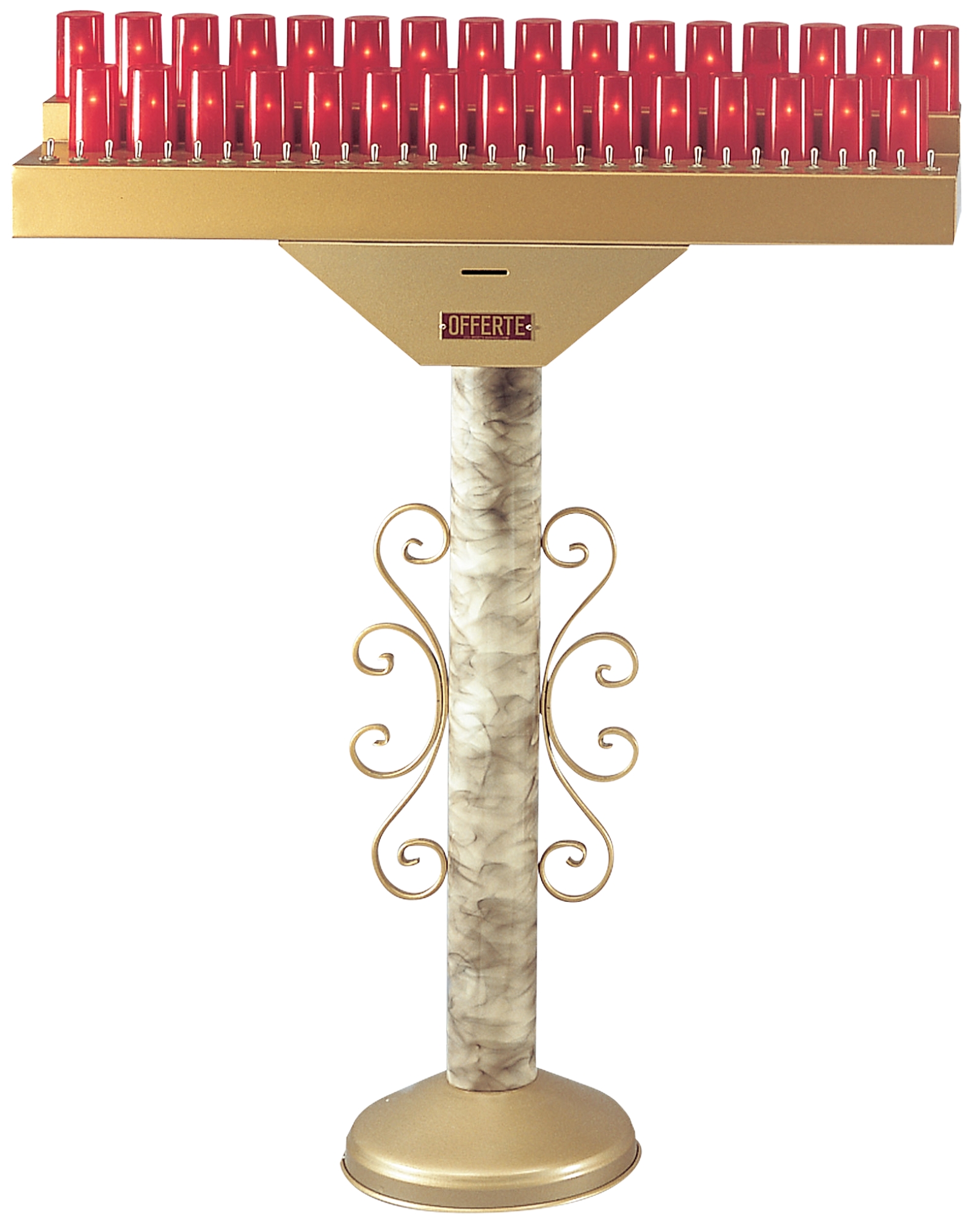 Votive candle stand with imitation marble foot with gilded metal decoration.