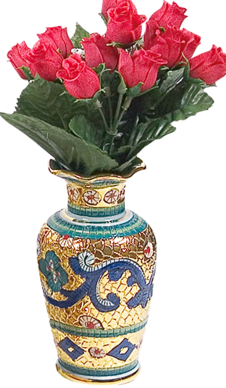 Elaborate flowers holder in Byzantine style are drawn on the gold background.