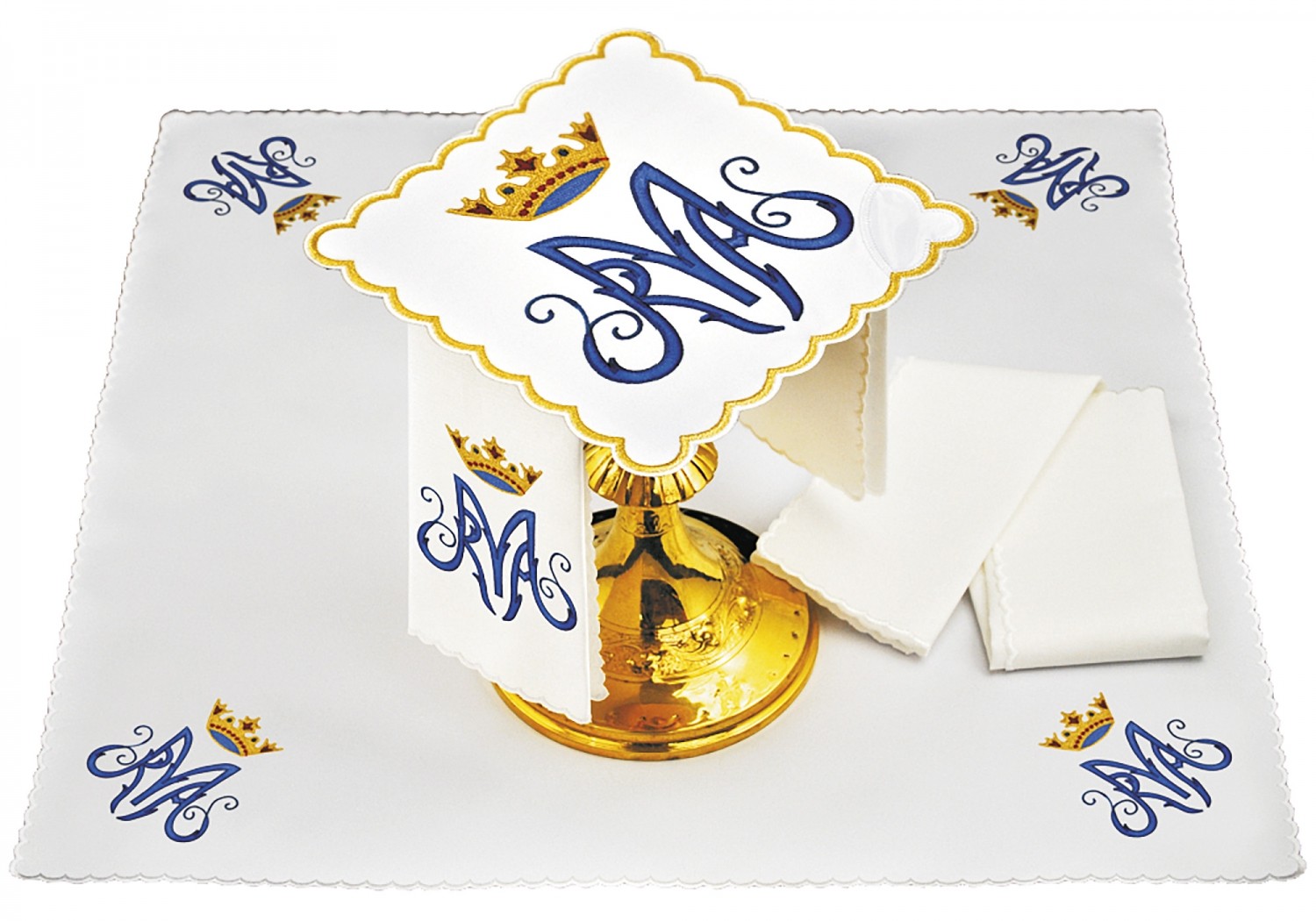 Complete set includes chalice pall, purificator, corporal and lavabo towel.