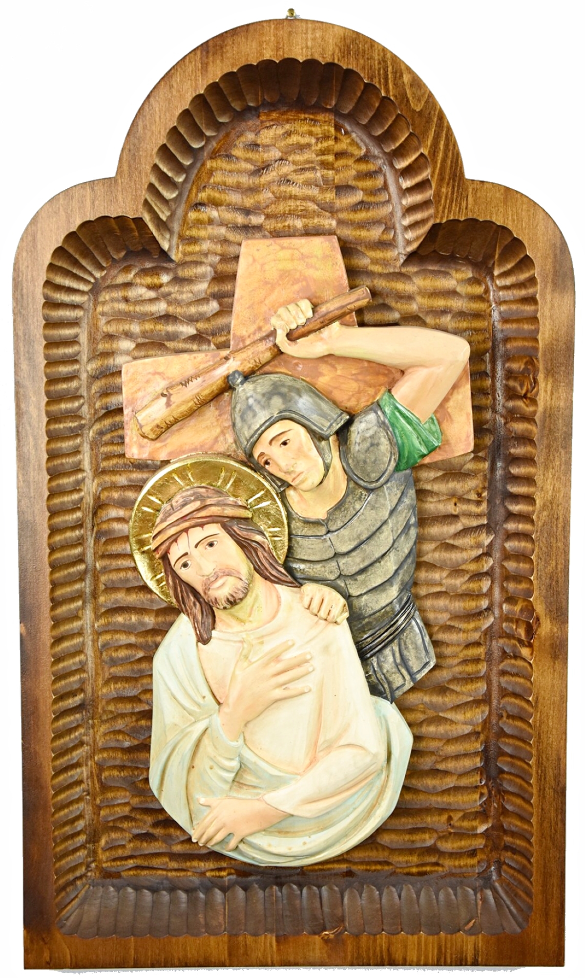 Fourteen hand-decorated linden wood stations are placed on hand-carved solid wood panels.