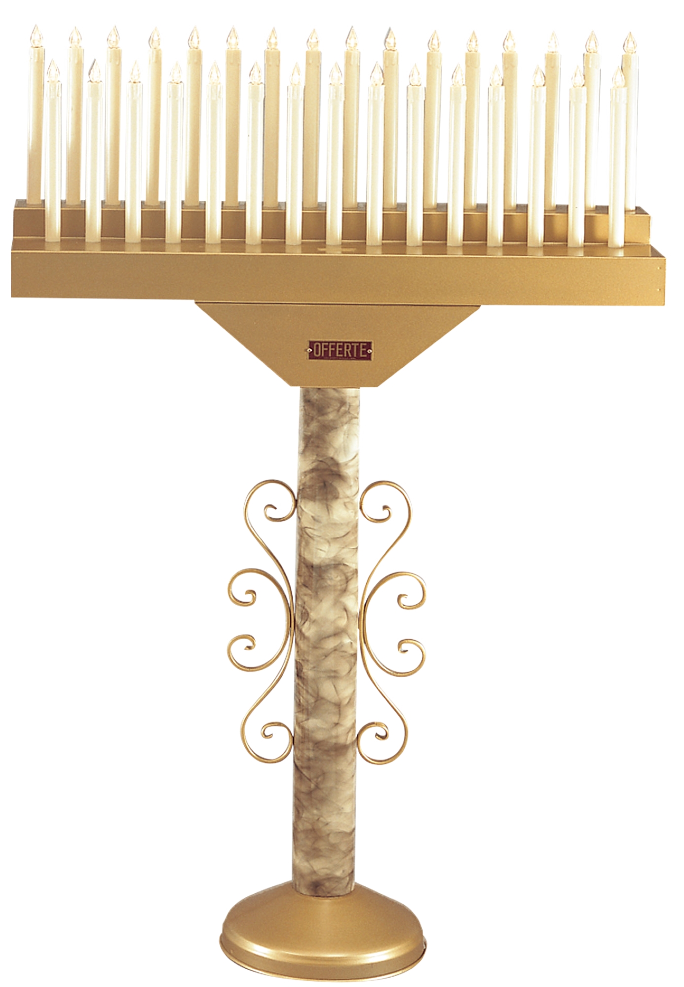 Votive candle stand with imitation marble foot with gilded metal decoration.