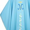 Casulla mariana confeccionada en un tejido de poliéster muy ligero y muy suave.