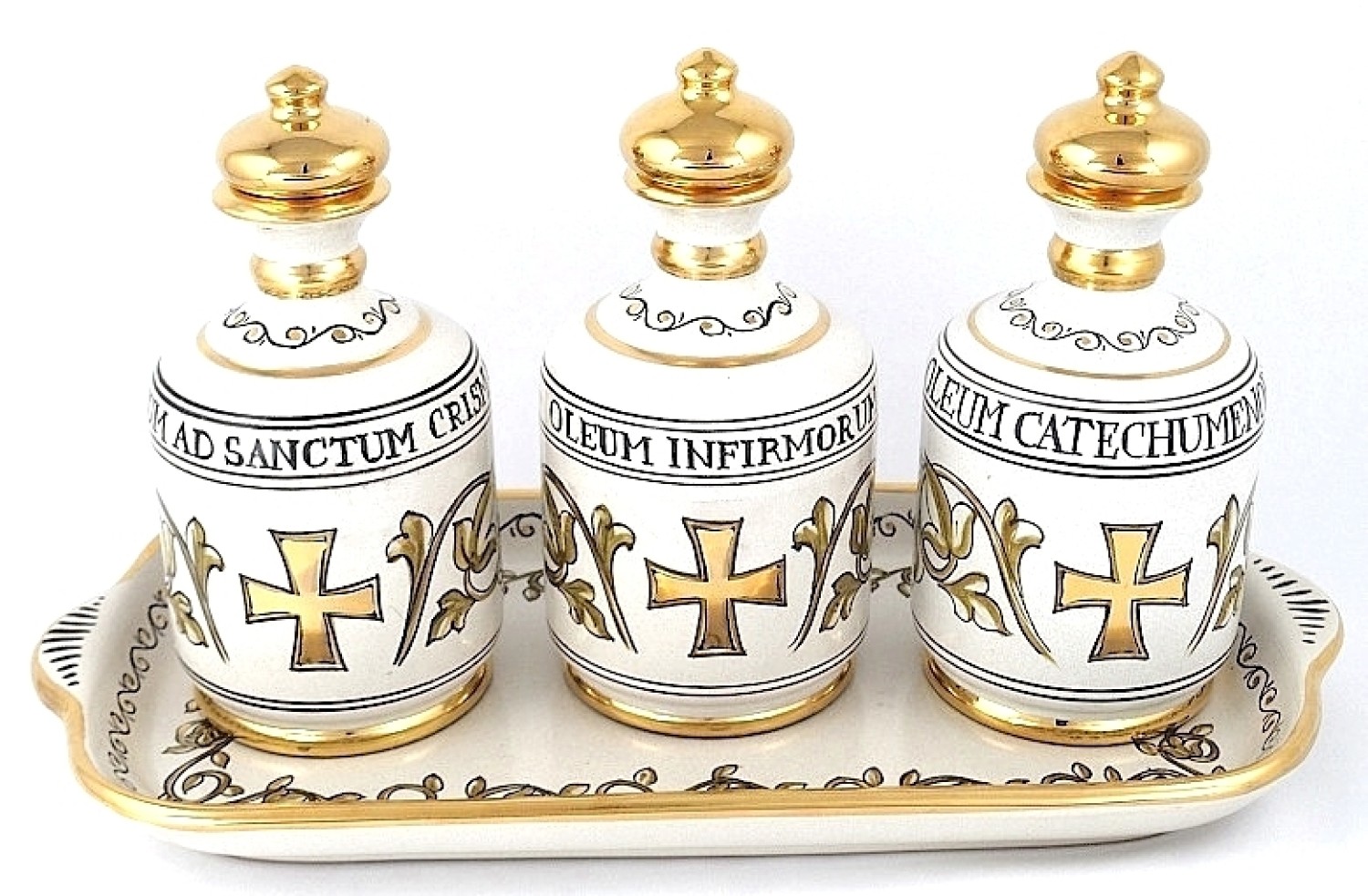 Laboratorio Gruppo Liturgico / Orfebrería religiosa / Crismeras-portaviáticos / Crismeras / Crismeras para óleos en cerámica