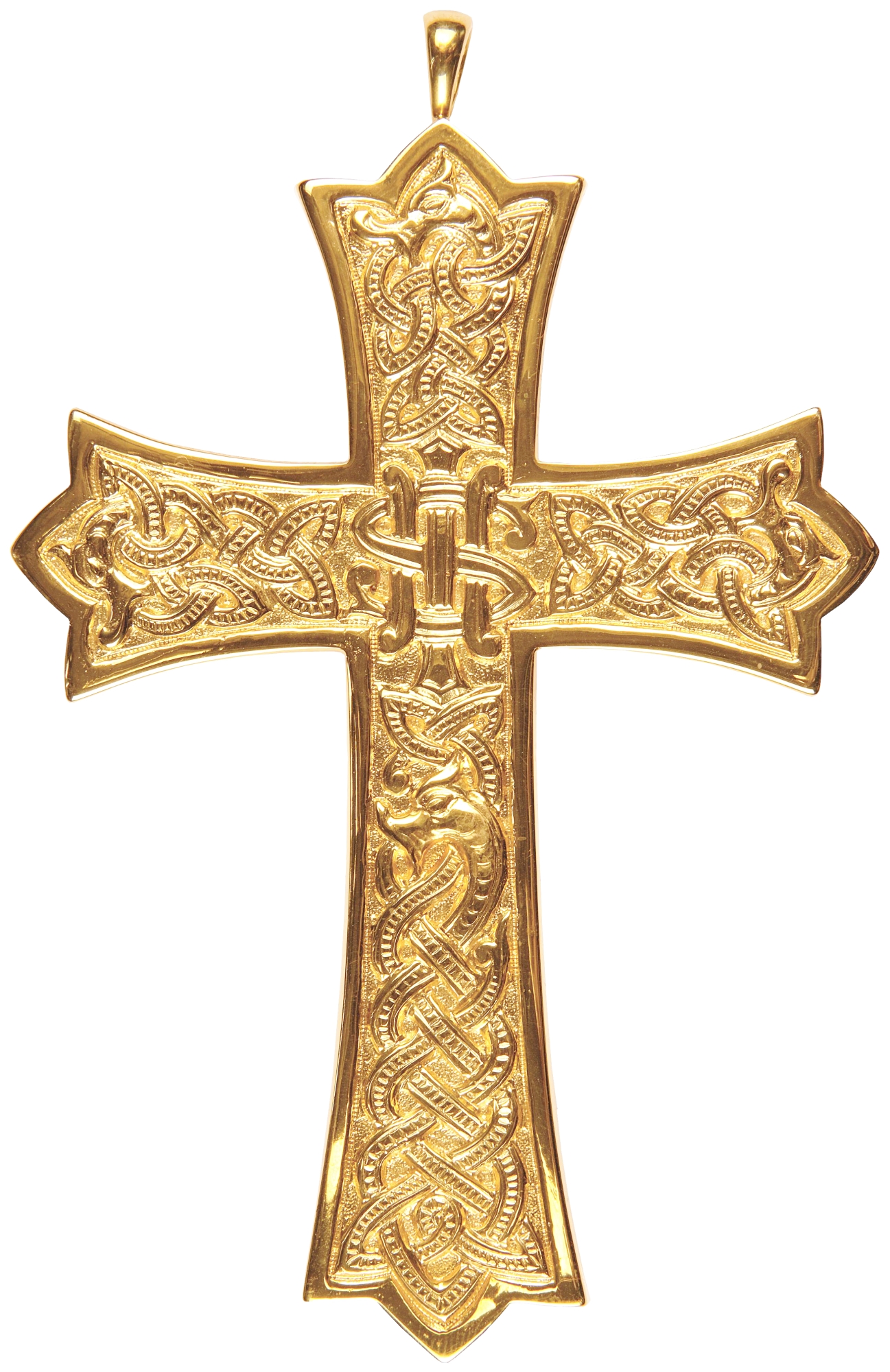 cruz pectoral de plata maciza con cincelados hechos a mano.