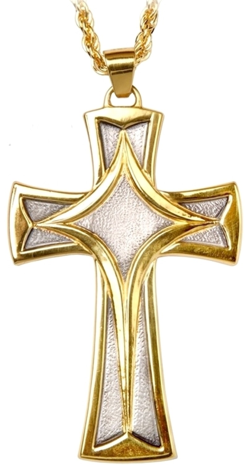 Cruz pectoral en metal con decoración en oro y plata bicolor.