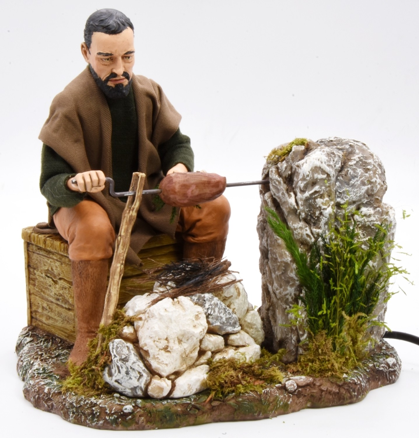 Laboratorio Gruppo Liturgico / Navidad / estatuillas con movimiento mecánico / Hombre asando