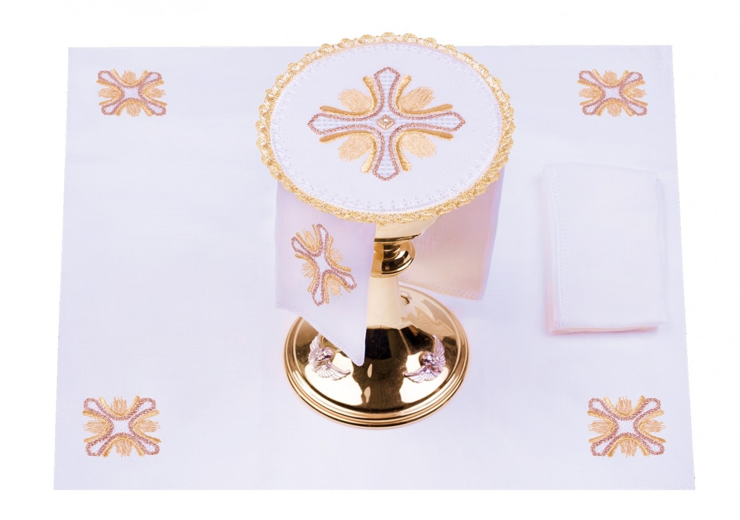 Juego completo de lino de altar de puro lin con bordados en hilo de oro y plata.
