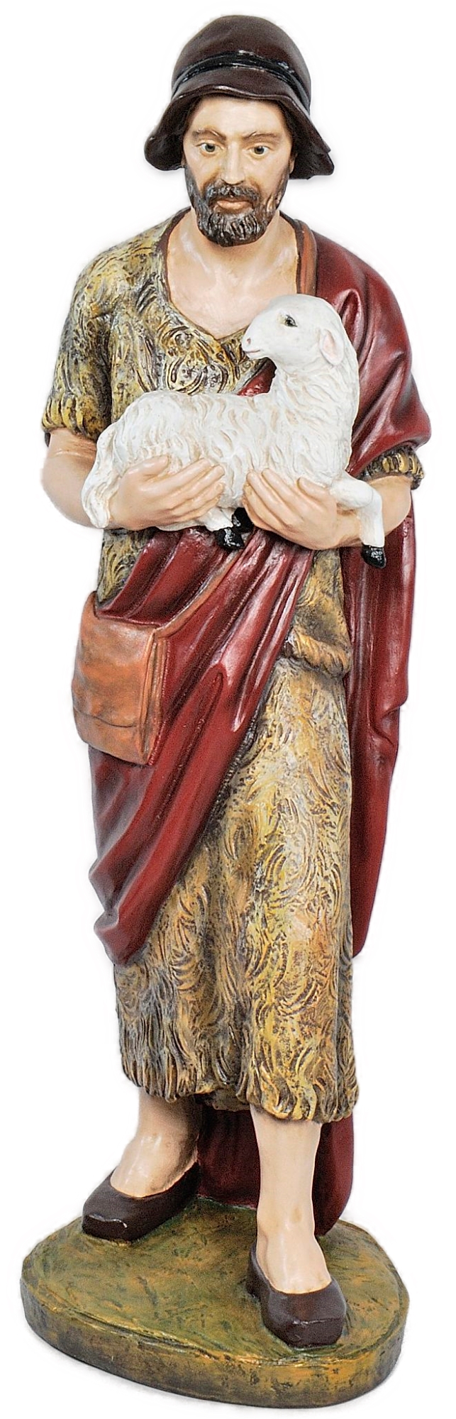 Pastor con cordero en fibra de vidrio con ojos de cristal.