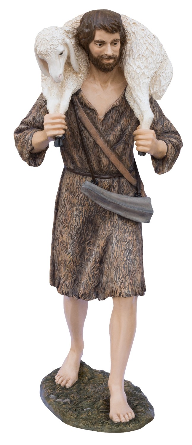 Pastor con cordero en fibra de vidrio con ojos de cristal.