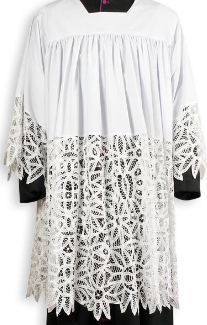 El encaje de Bruselas “Renacimiento” hecho a mano artesanalmente, mide 60 centímetros