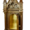 Reproduce simbólicamente en miniatura la fachada gótica de una iglesia con portal, rosones, columnas y afiladas agujas.