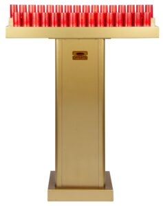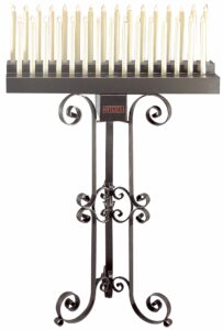 Lampararios electrónicos para iglesia. Se distingue entre lampararios electrónicos con encendido y apagado automático y con encendido manual. Lampararios para iglesia con cerradura blindada tipo caja fuerte. Portavelas votivas, portavelones. Lampararios eletronicos con velas que encajan, la vela se enciende colocándola en el alojamiento adecuado.