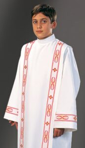 Les articles dédiés aux enfants de chœur et aux servants dde messe sont largement traités dans le département : albes d’enfants de chœur, soutanelles pour enfants de chœur, surplis, pour soutanelle. Les habits de choeurs pour les servant d’autel peuvent également être adoptées comme tuniques de lecteur et robes d’acolyte. Le Laboratorio Gruppo Liturgico a la possibilité de réaliser n’importe quel confection sur mesure et à la demande du client.