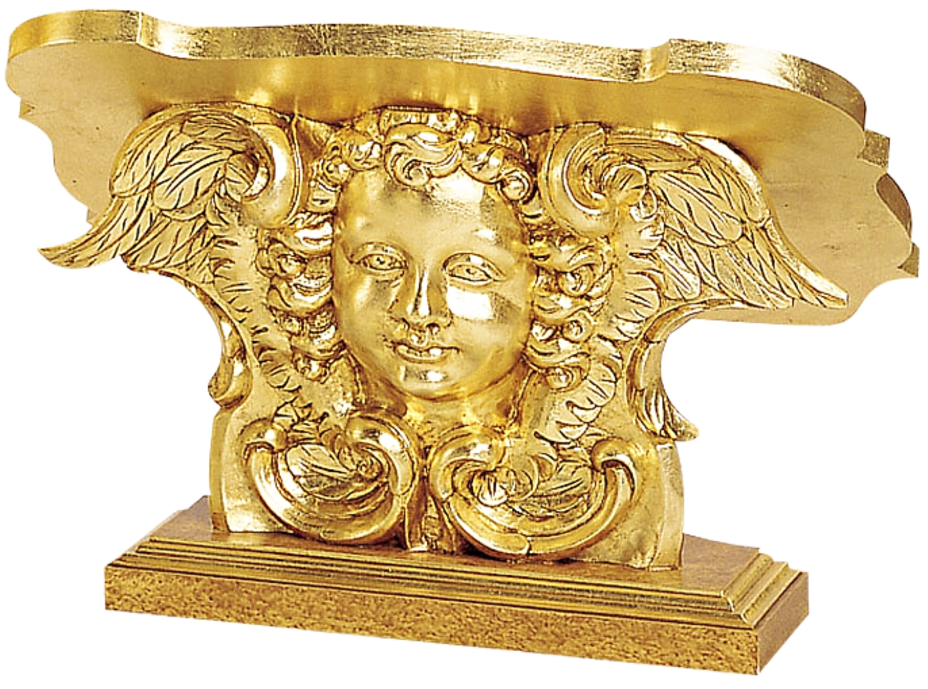 Un visage d’ange sculpté et deux ailes ouvertes pour le pupitre.