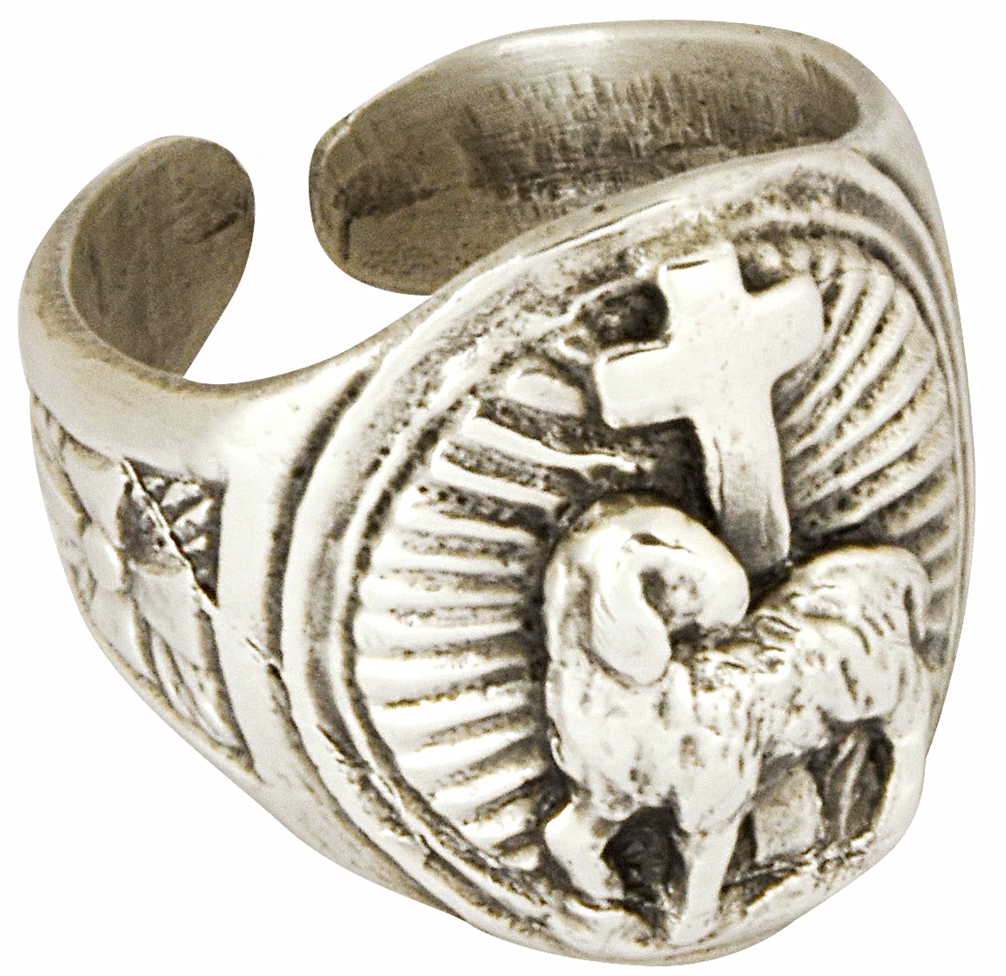 anneau épiscopal entièrement en argent massif.