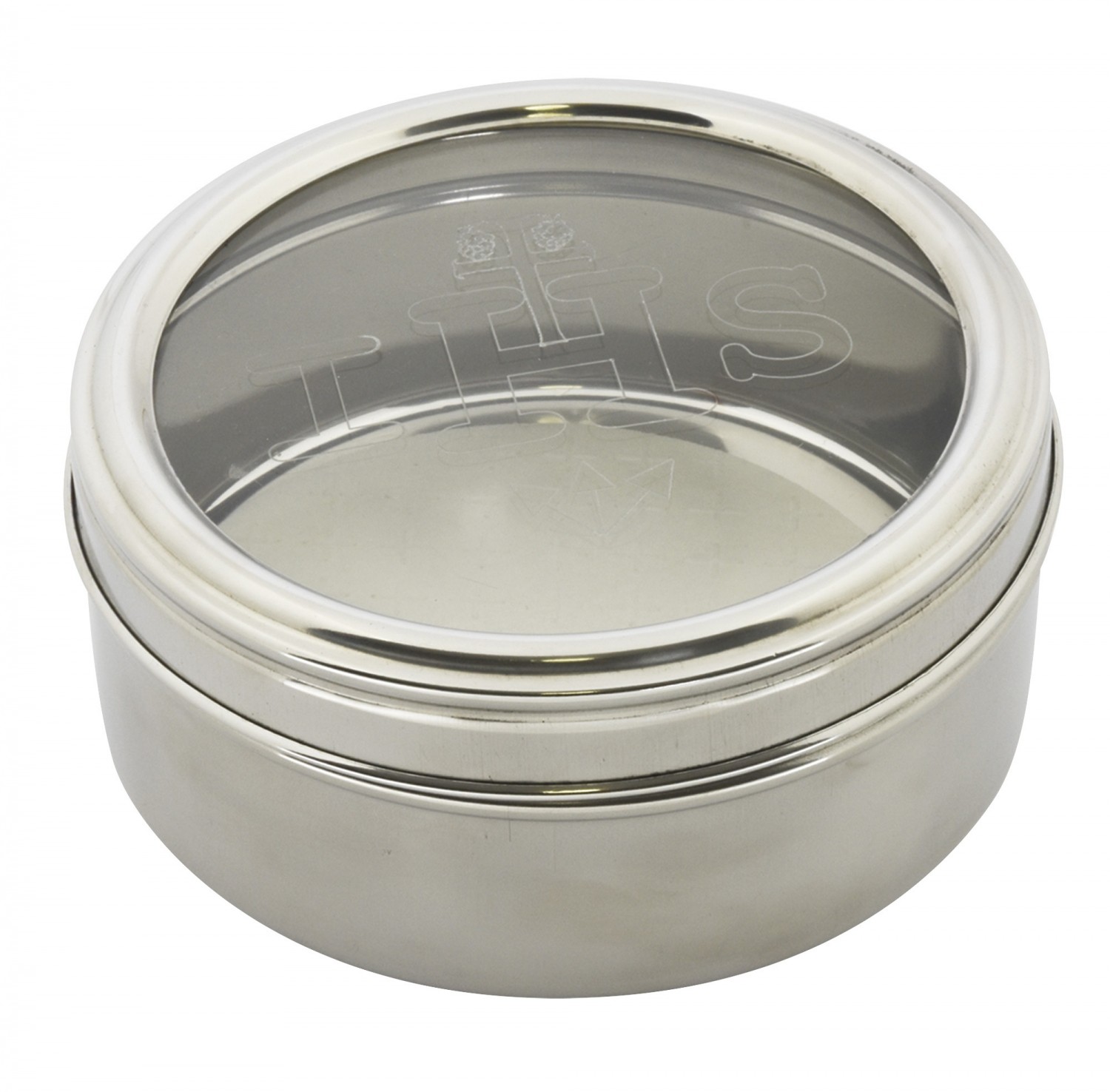 en acier inoxydable avec fermeture hermétique et couvercle transparent.
