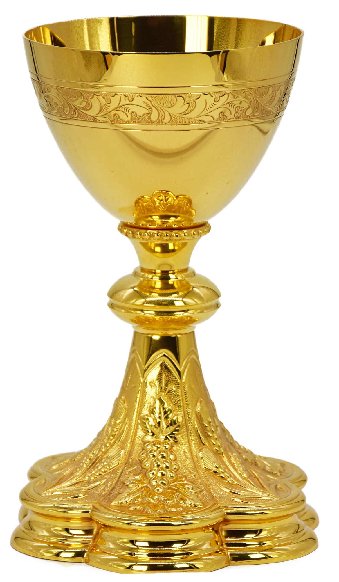 Calice avec élégante fusion en grand relief d’épis de blé et de grappes de raisin sur la base.