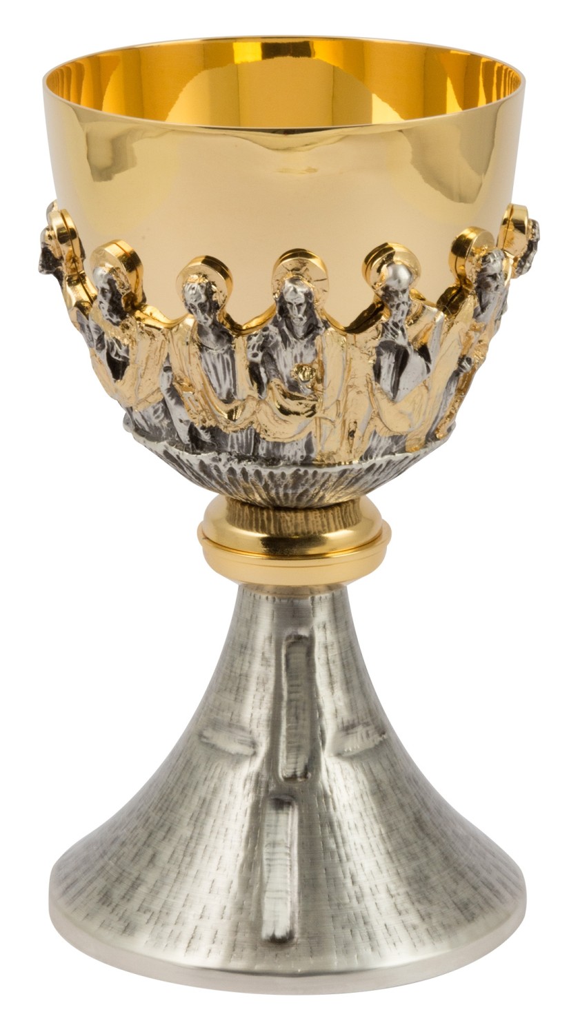 La coupe est entourée d’une élégante fusion en bronze à cire perdue, dorée et argentée, représentant La Cène.