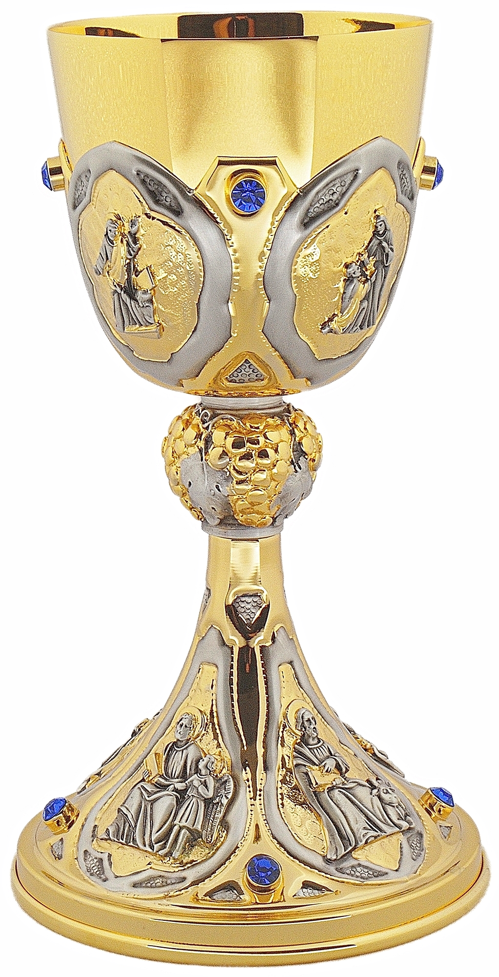 Calice entièrement ciselé à la main agrémenté de pierres semi-précieuses.