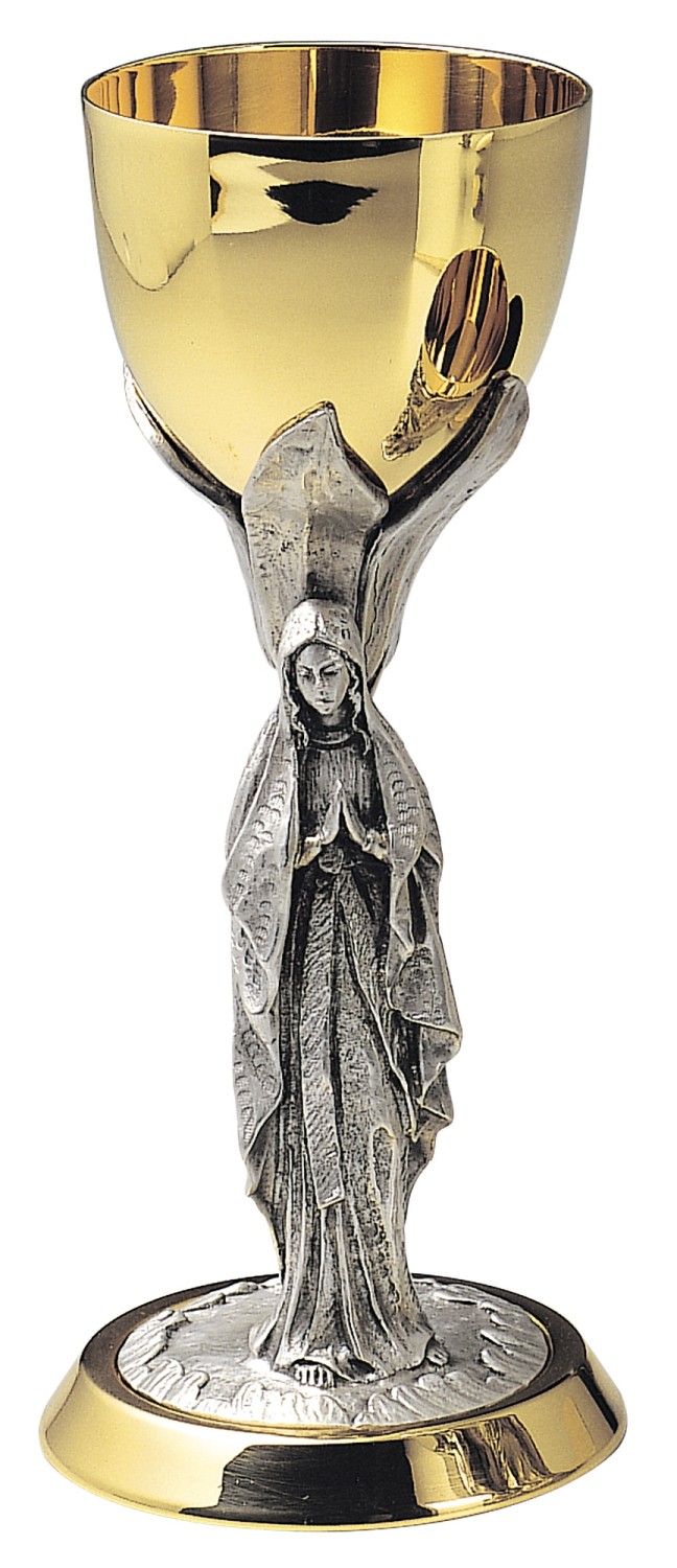Une petite statue de l’Immaculée de Lourdes devient la tige qui, en se transformant en lis, soutient la brillante coupe dorée.
