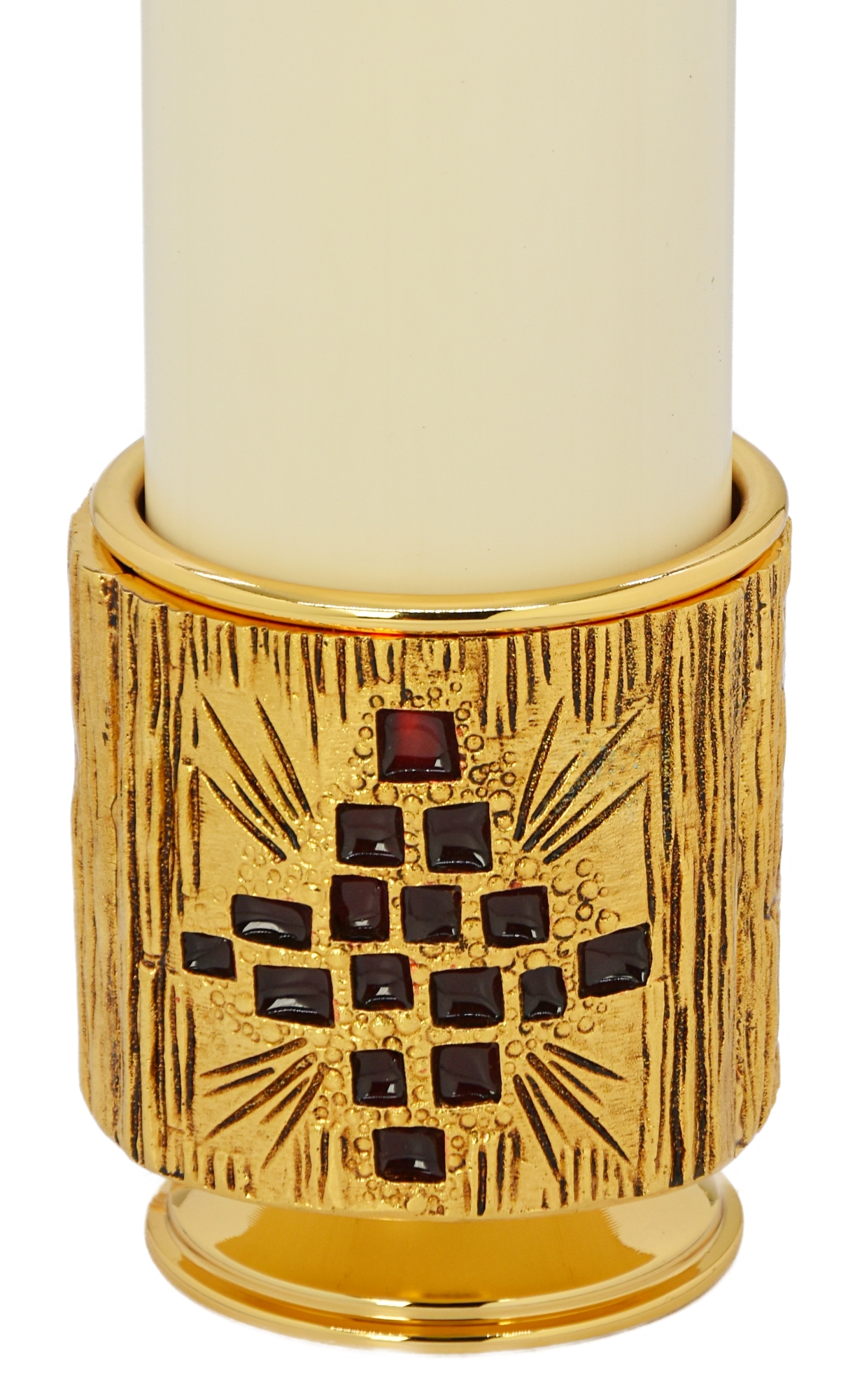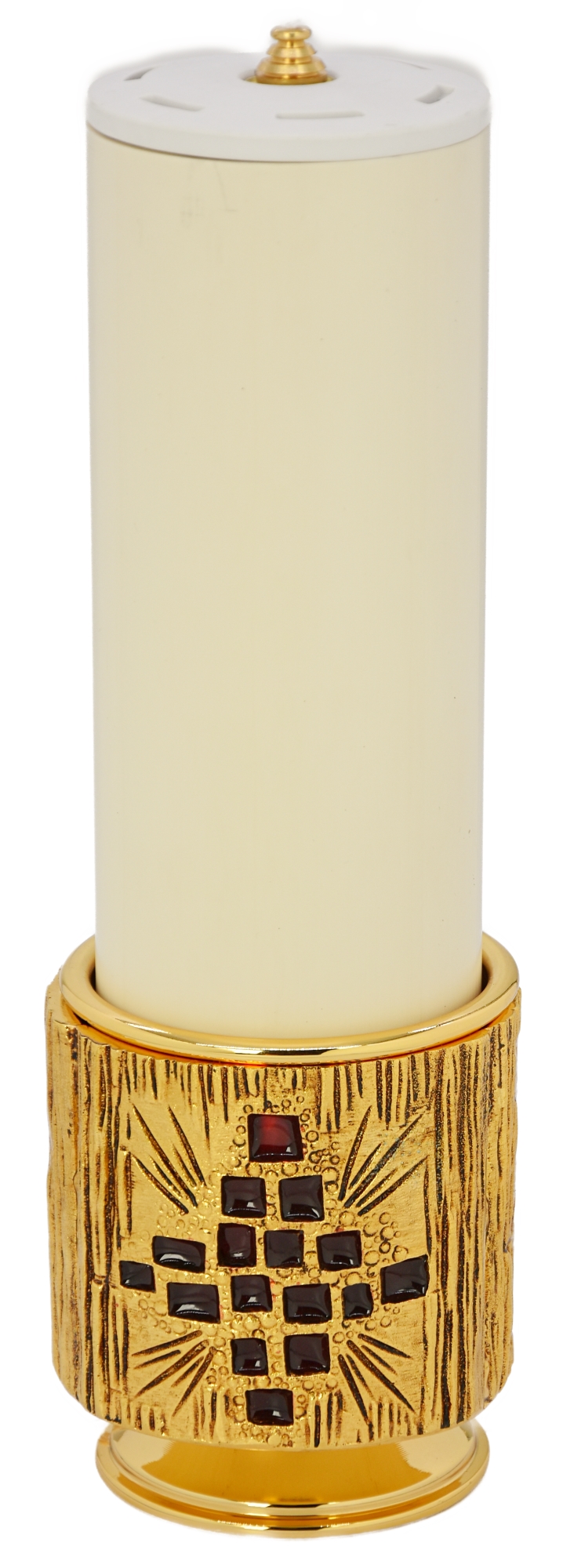 Le chandelier comprend la relative bougie de Ø 8 cm, longueur cm 20, avec le récipient de cire liquide.
