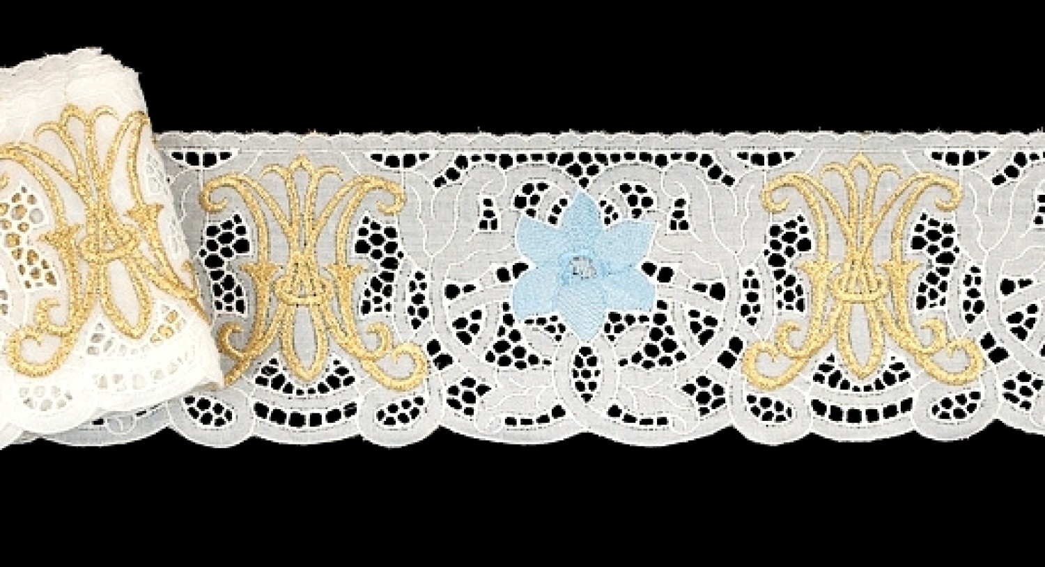 Dentelle pour nappe d’autel en tissu métis avec broderie à jour.