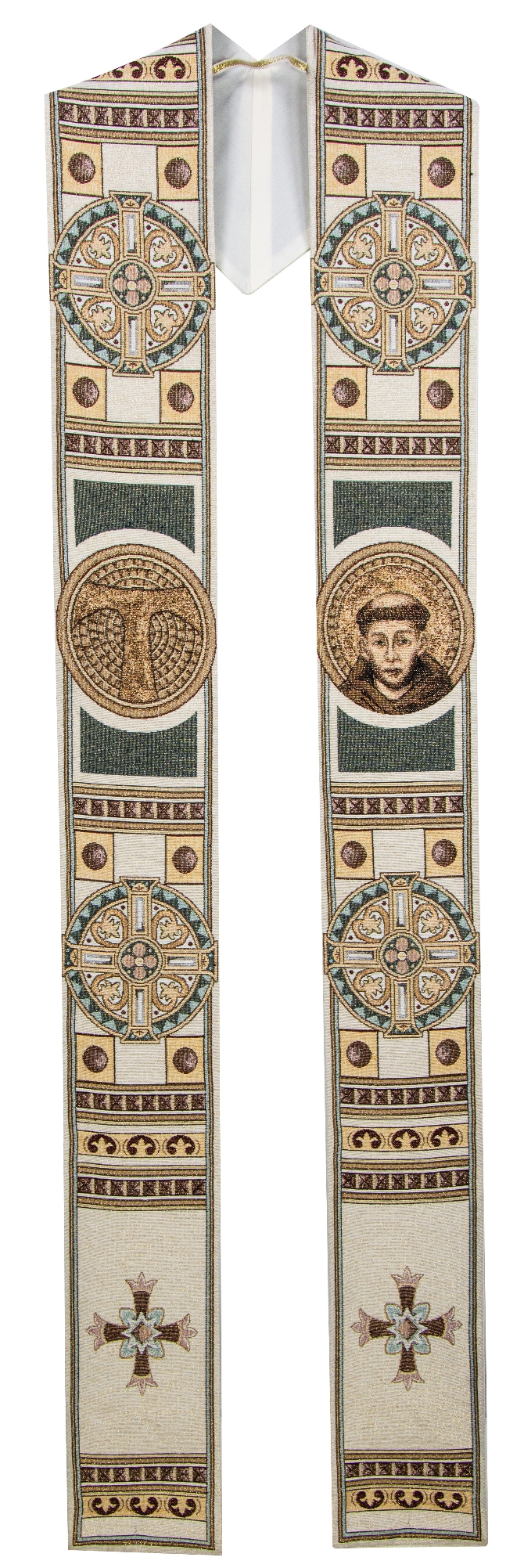 Parmi les différents symboles de l’art chrétien médiéval,  figurent le visage de saint François et le Tau franciscain.