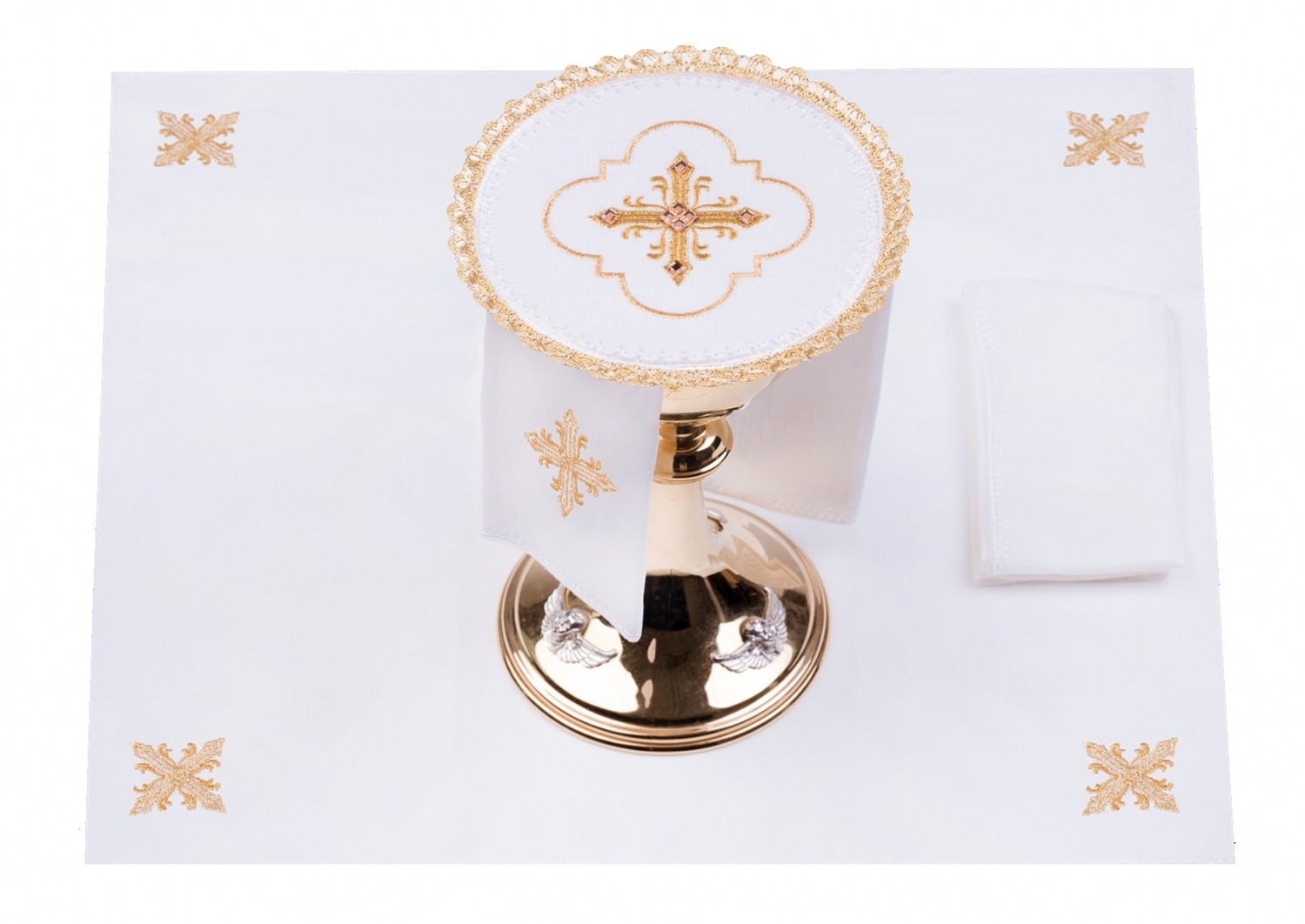 Complet de 4 pièces: purificatoire, manuterge, corporal, pale.