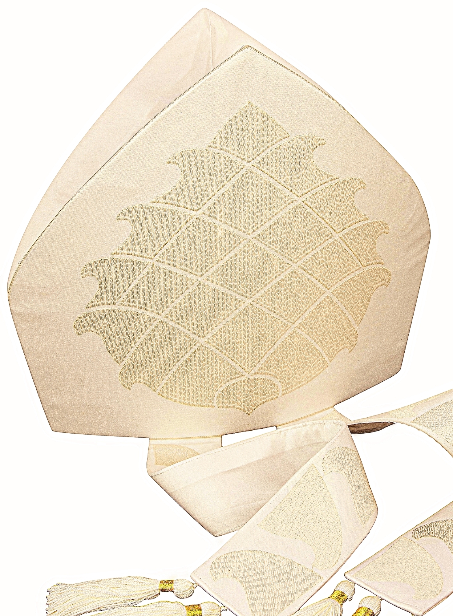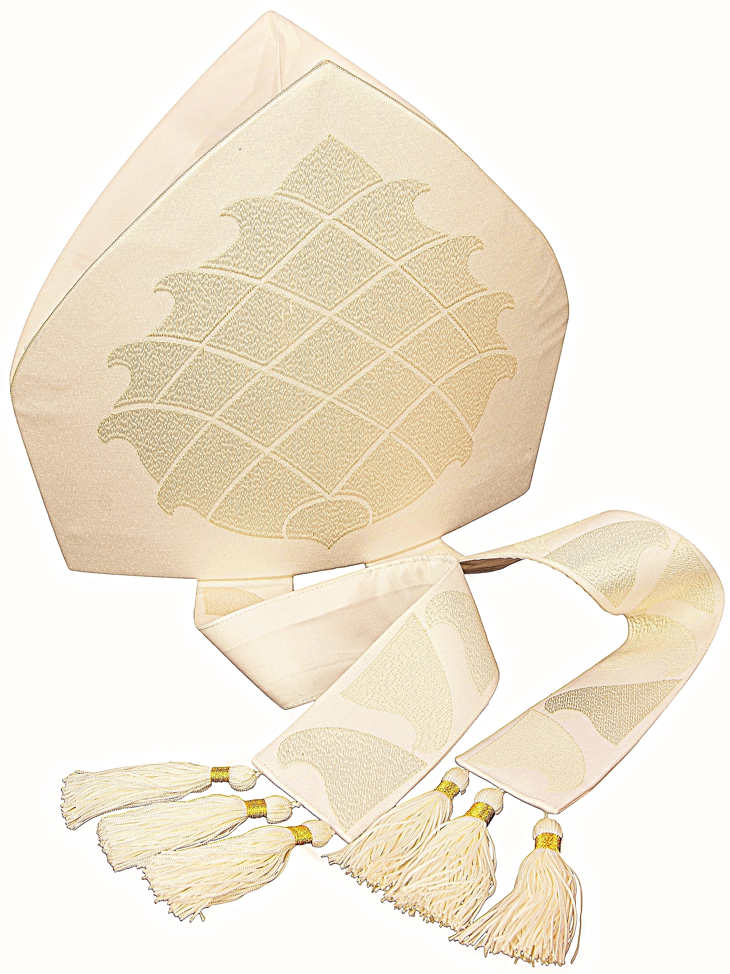 mitre classique de forme traditionnelle en satin de polyester blanc.