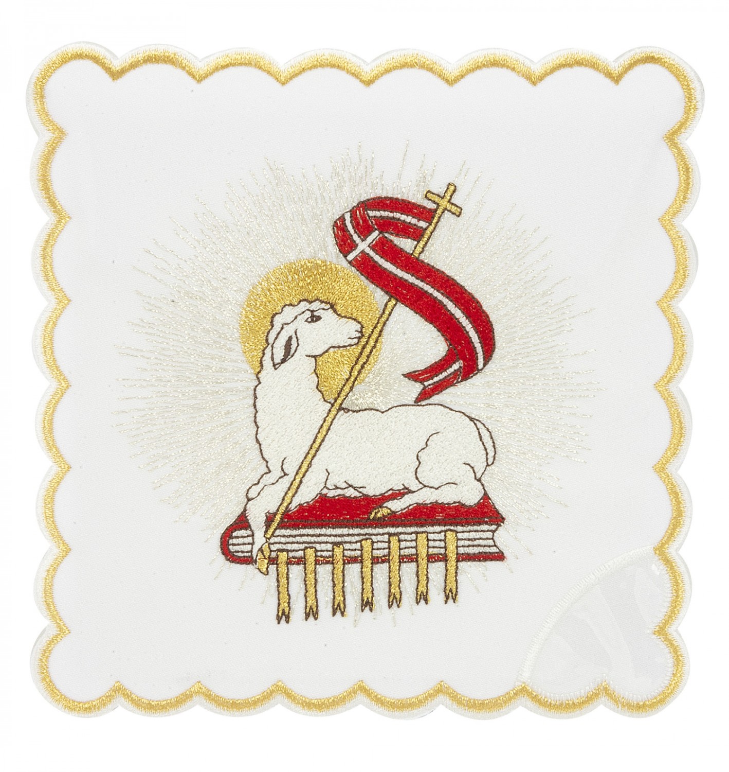 Pale pour calice richement brodée avec symbole de l’ “Agneau de Dieu”