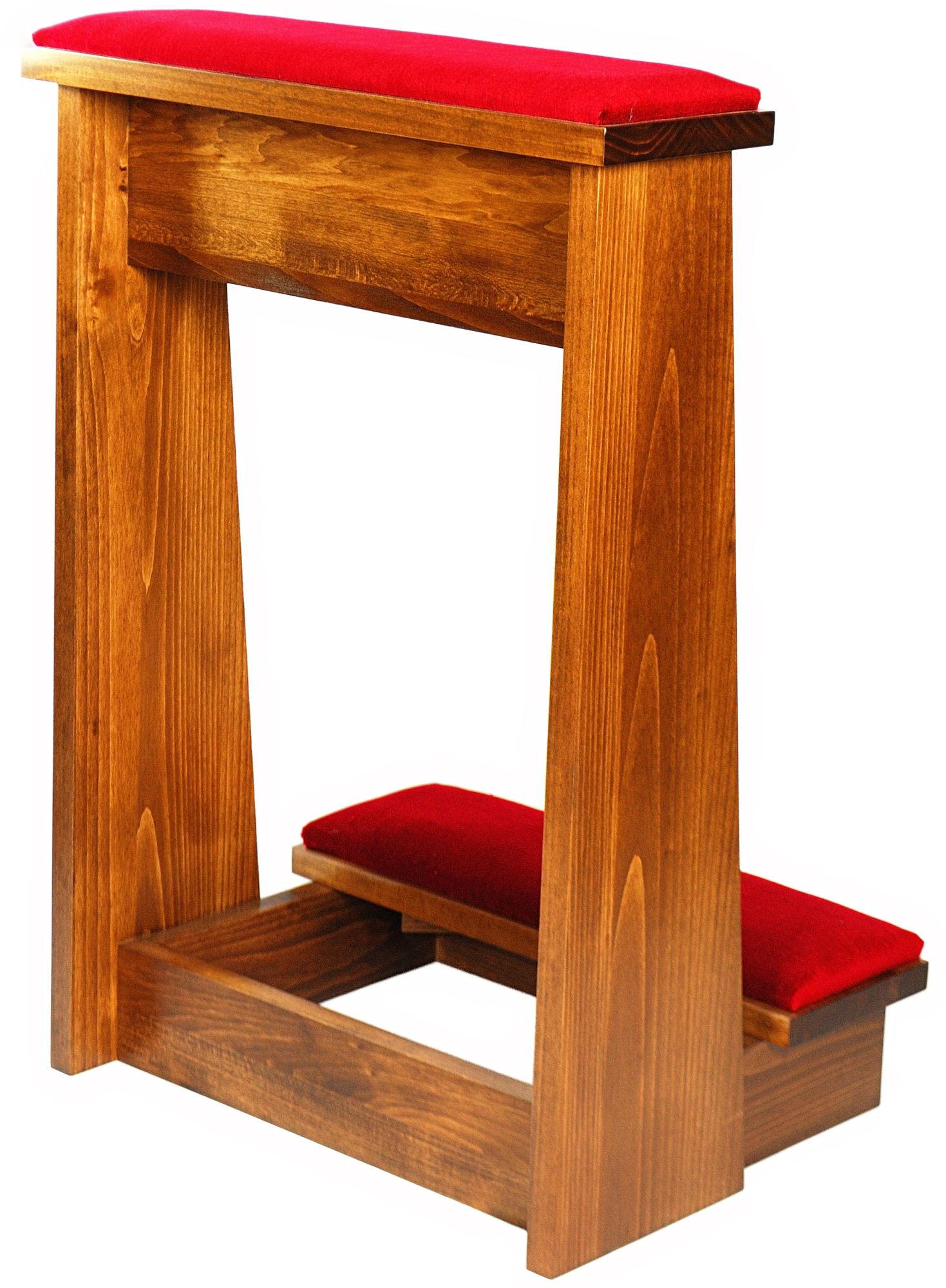 Prie-dieu en bois avec des rembourrages revêtus en velours.