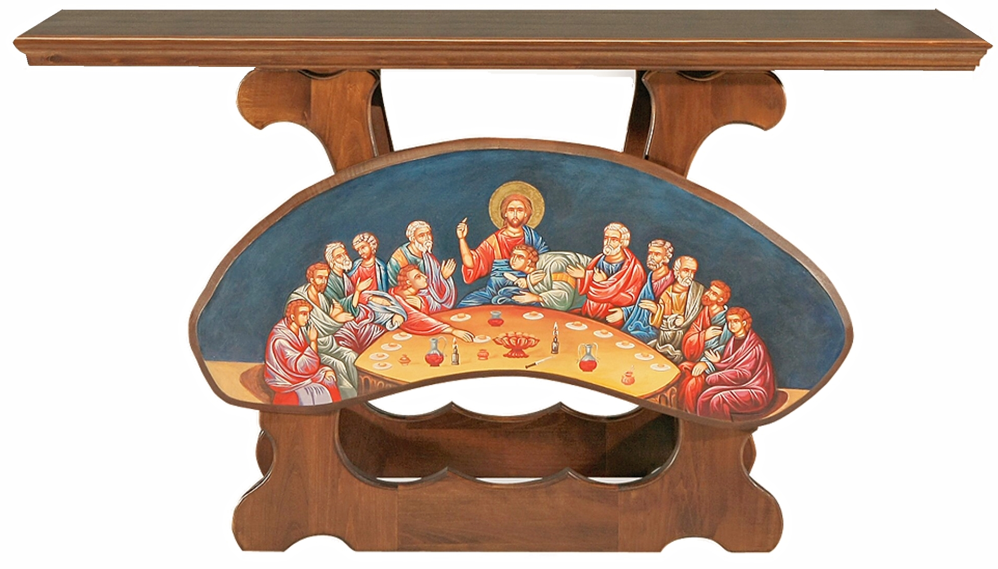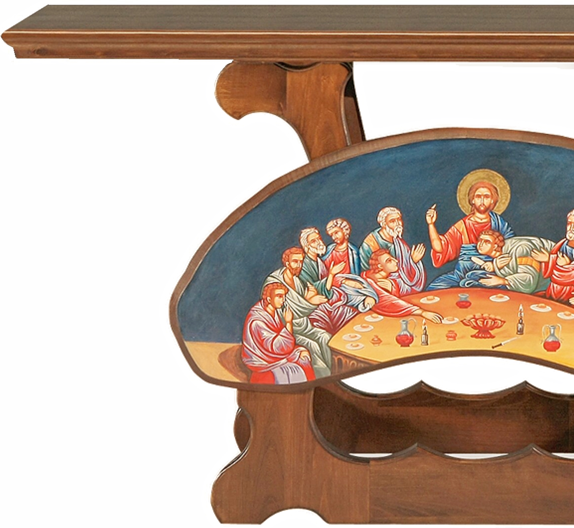 Il pannello, di cm 120, raffigurante l’Ultima Cena è in legno massiccio dipinto a mano come un’ icona.