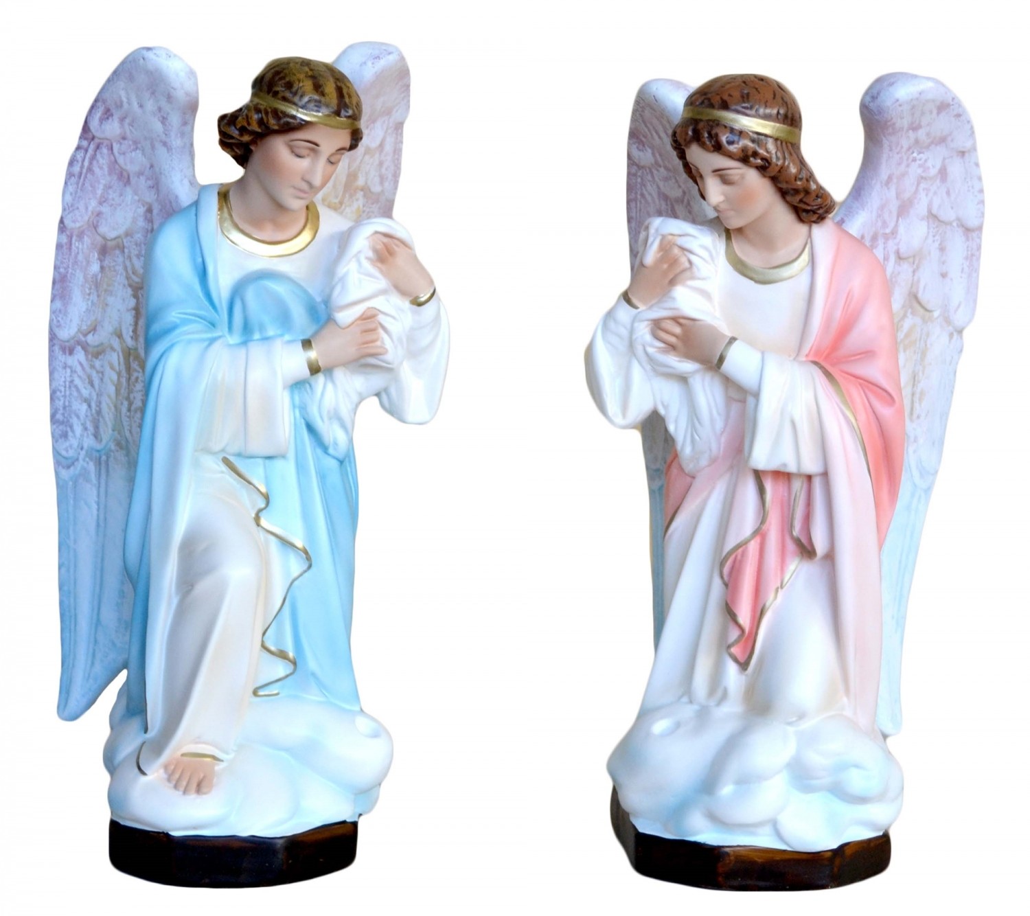 coppia di angeli in resina, decorati a mano con colori ad olio.