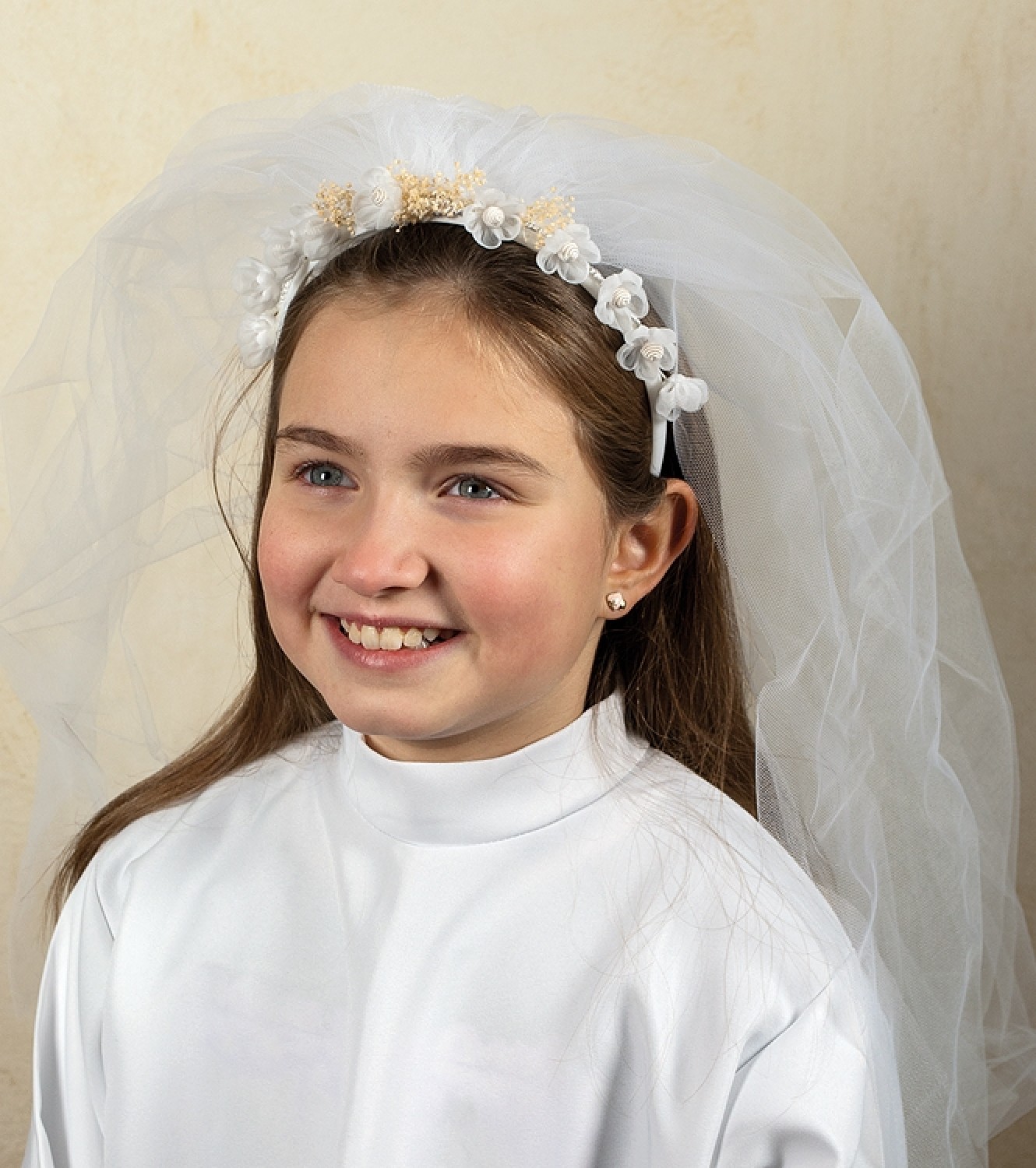 Laboratorio Gruppo Liturgico / Prima Comunione / accessori / Coroncine e ghirlandine / Cerchietto con velo tulle
