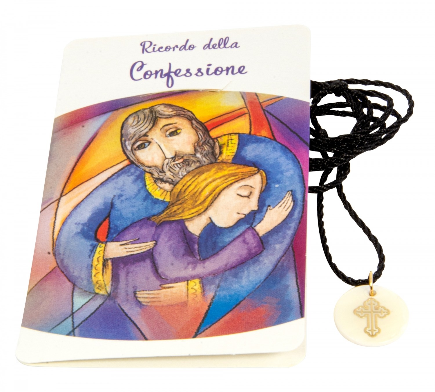 Collanina ricordo della Prima Confessione con medaglietta in smalto.