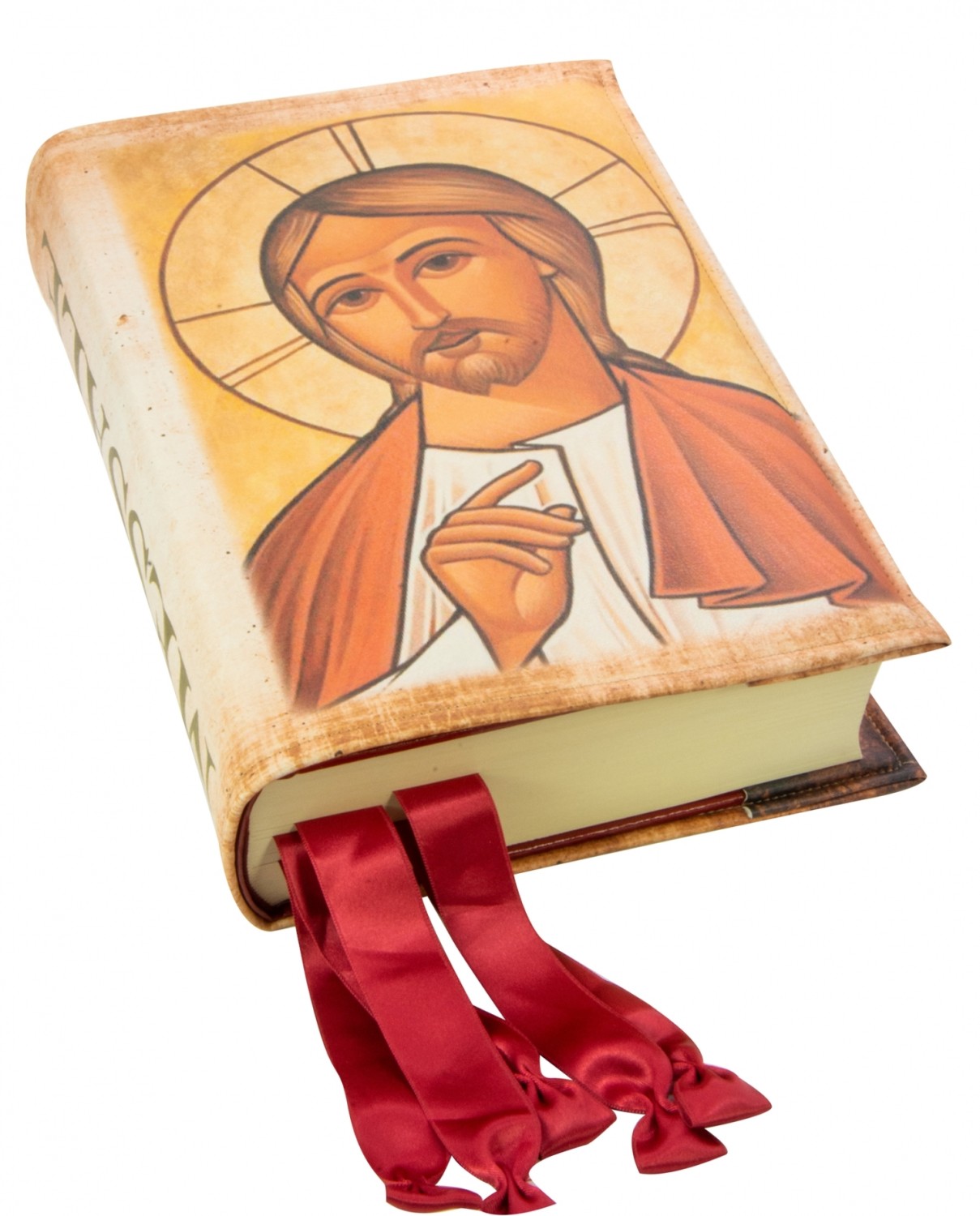 copertina per messale realizzazione artigianale italiana in ecopelle con stampa di Gesù Benedicente in alta definizione.