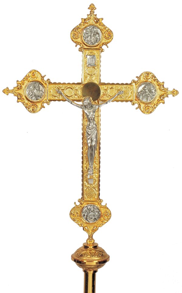 ricca fusione con cantonali ornati di medaglioni argentati raffiguranti gli Evangelisti.