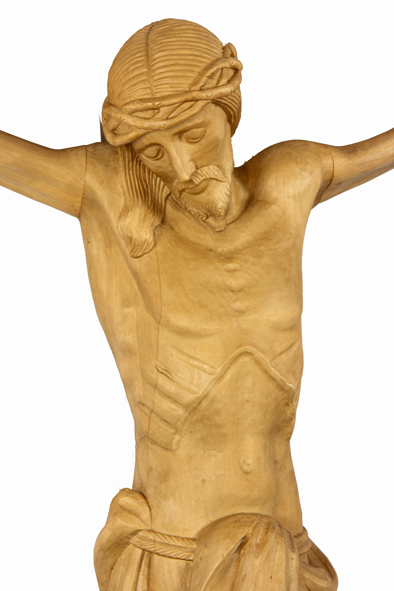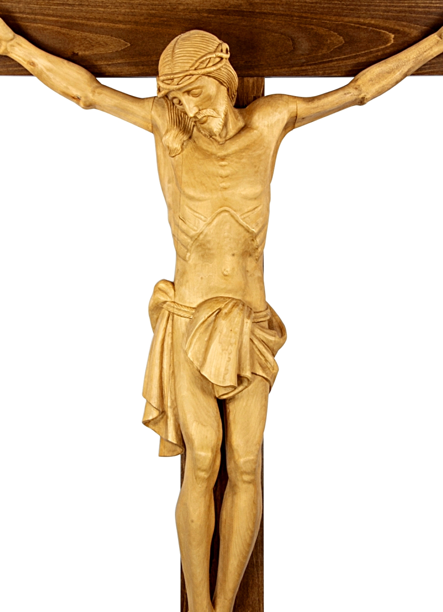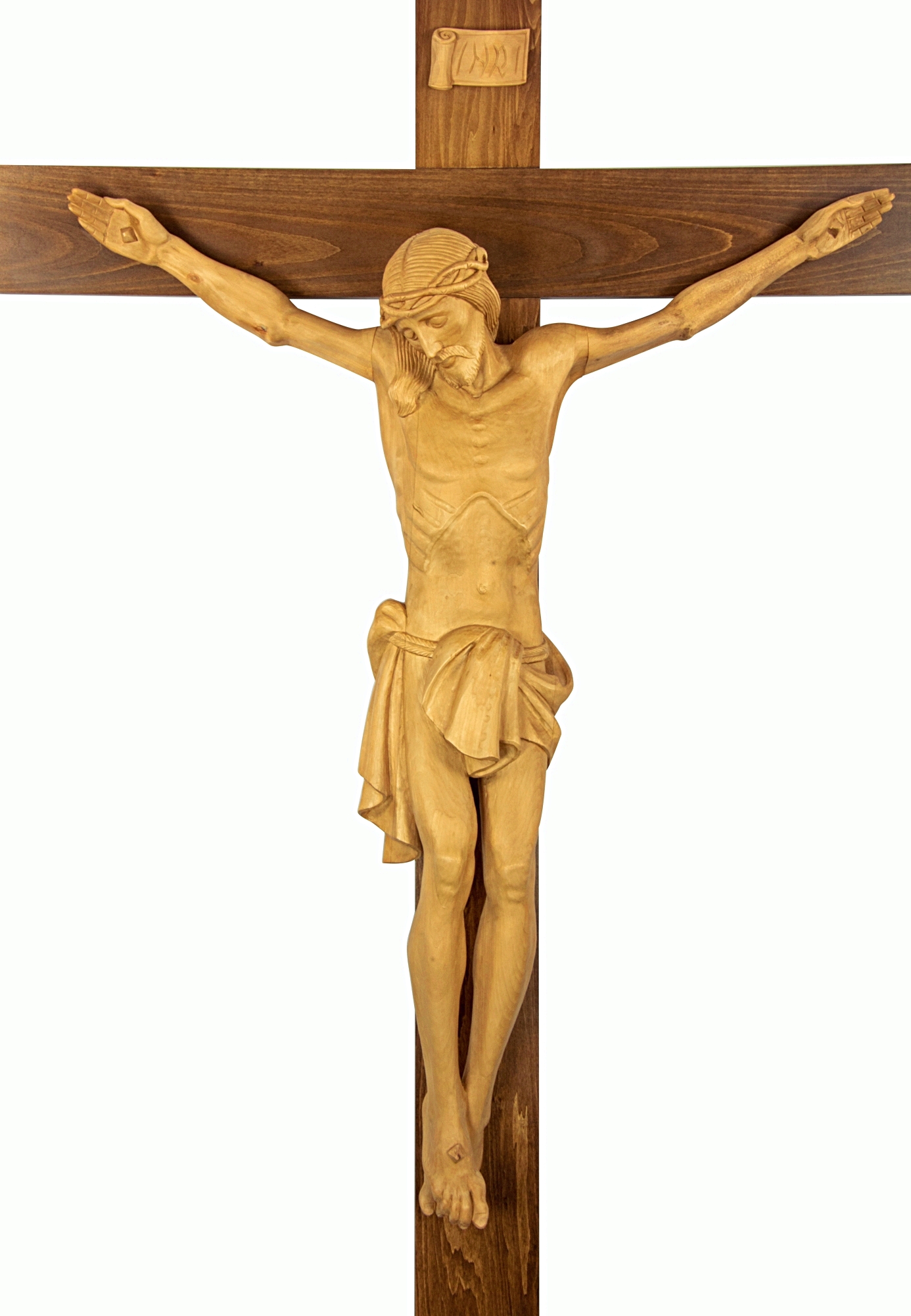 Crocifisso legno di tiglio scolpito e patinato in diverse tonalità.
