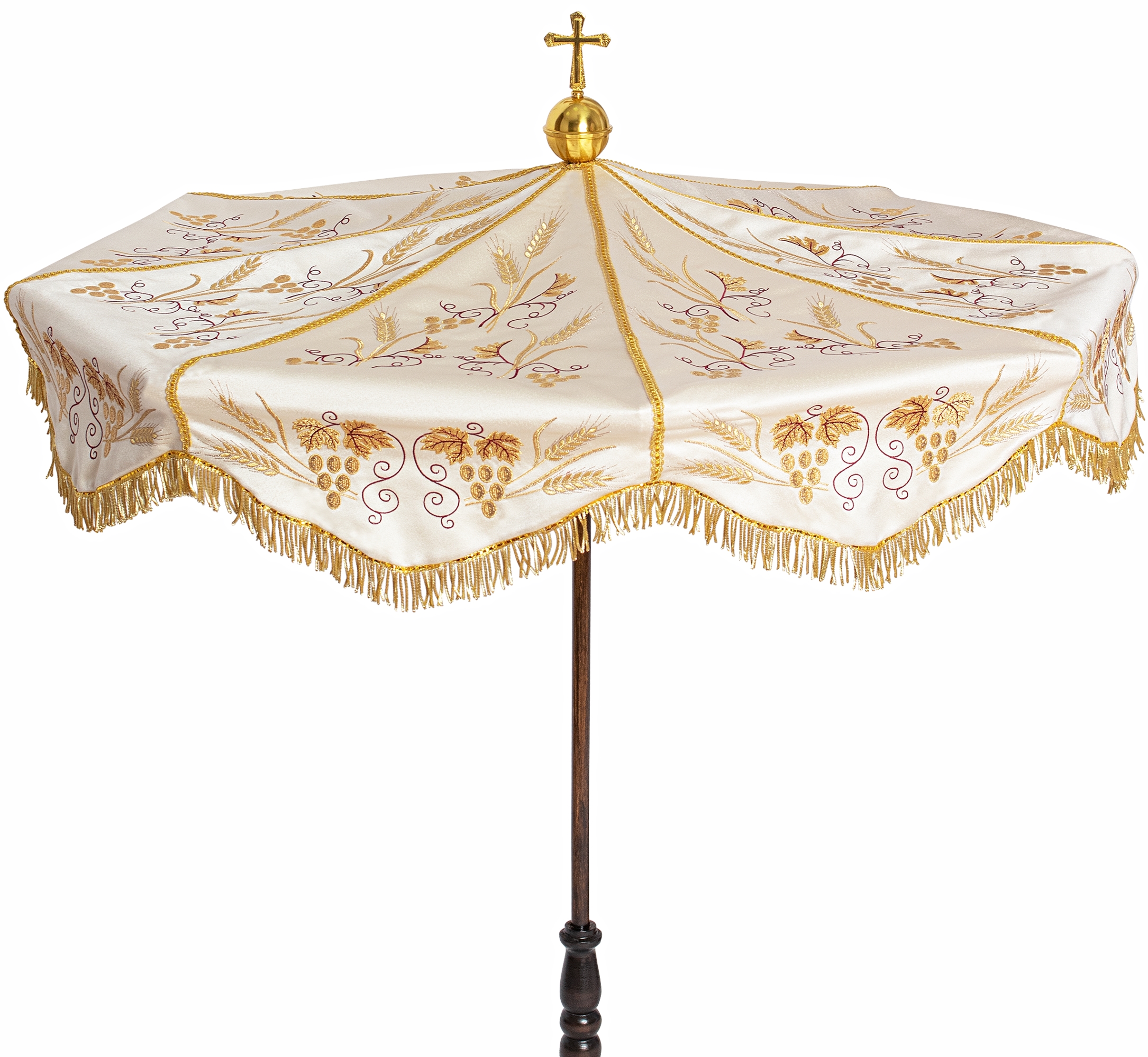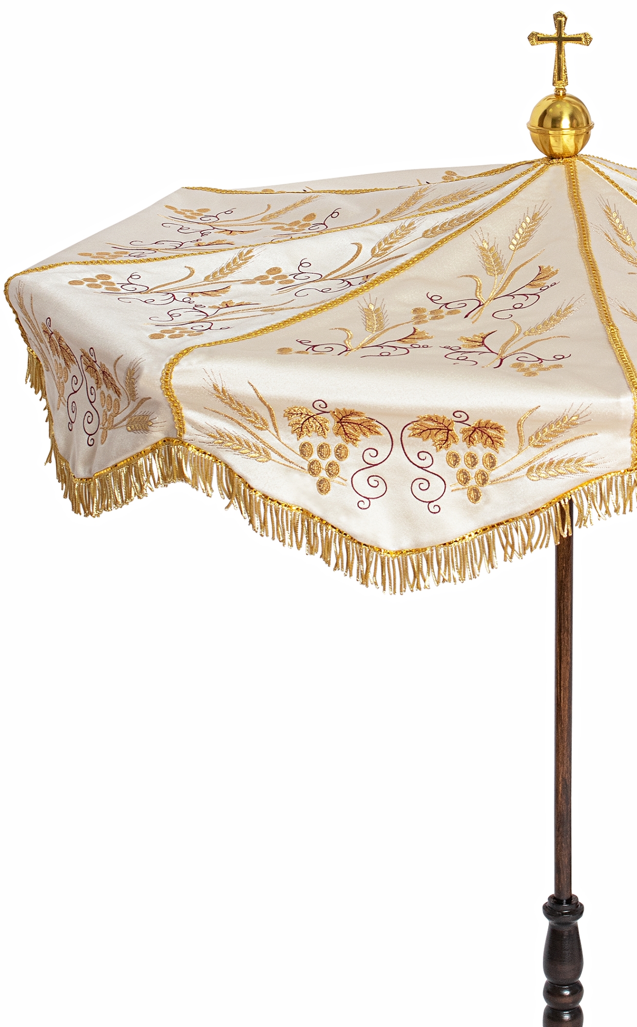 Presenta una passamaneria ornamentale e la frangia dorata.