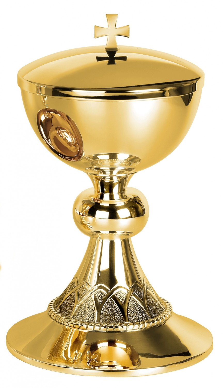 Pisside molto elegante con motivo gotico cesellato a mano sulla base.