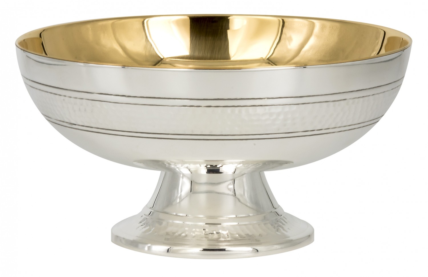 Presenta ceselli e martellature sulla coppa e sulla base.